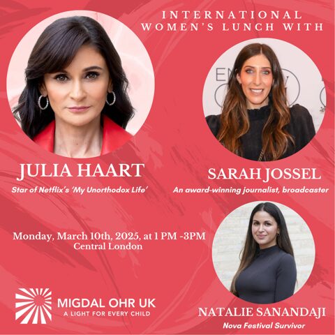 Migdal Ohr UK warmly invites you to a special International Women’s Day Lunch, a powerful gathering dedicated to celebrating the strength, courage, and resilience of Israeli women, especially in the wake of October 7th.